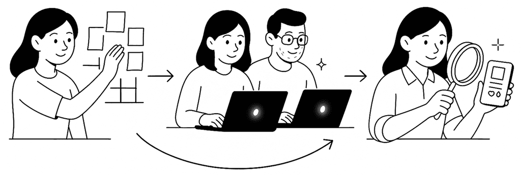 I map the mess, we code with care, then test what’s there.