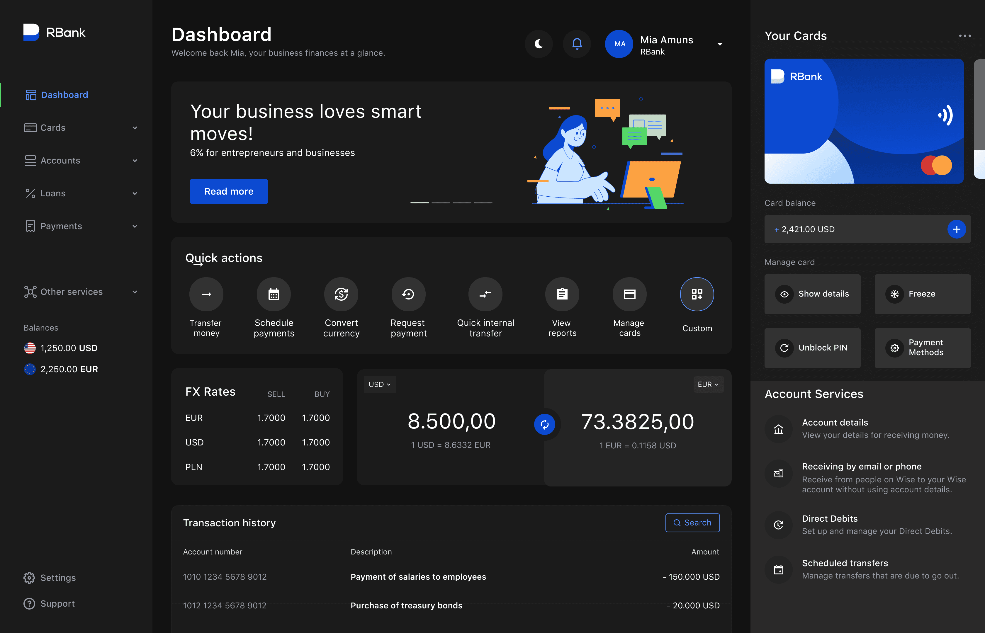 Project Type: Fintech platform for business clients