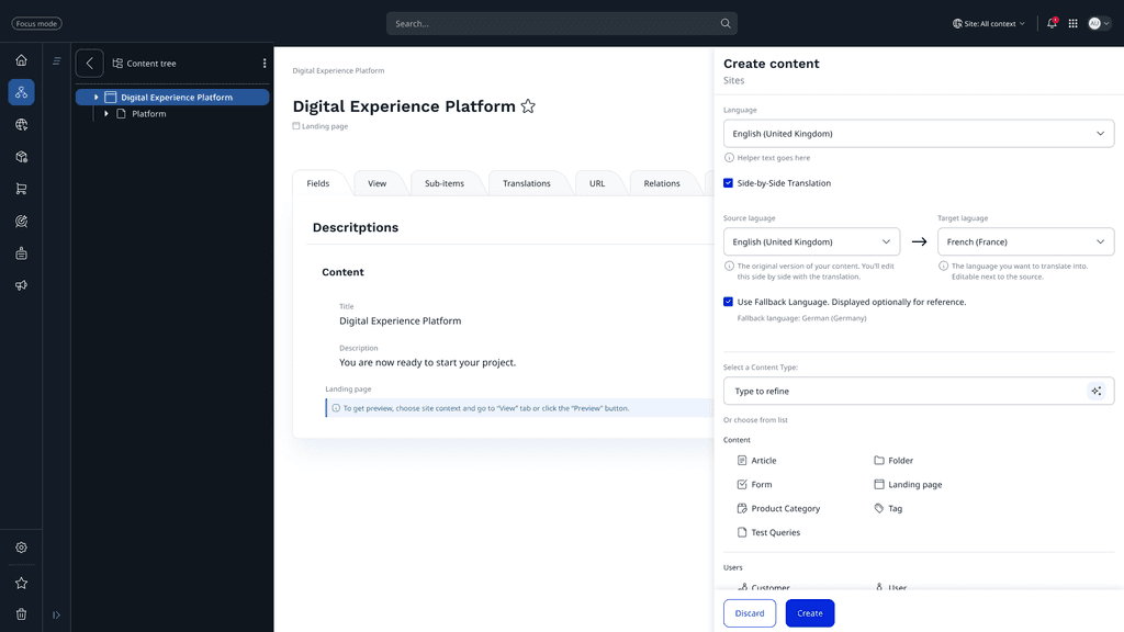 • Created a component library for translatable fields (text, media references, rich text).