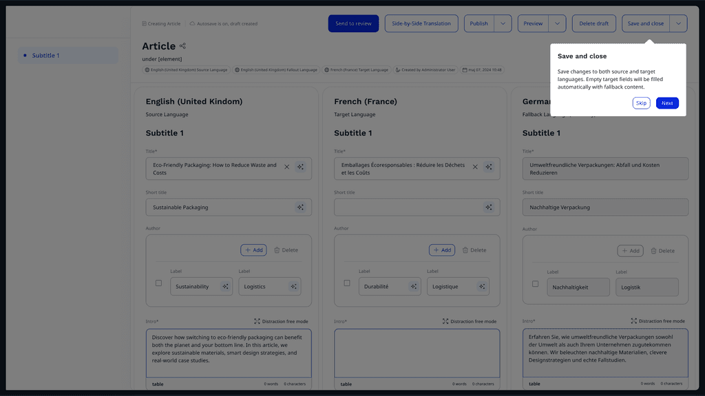 Side-by-Side Translation – intuitive multilingual editing in CMS